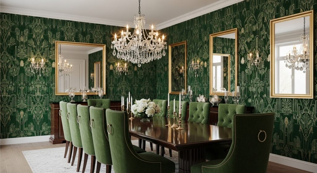Green and Gold Dining Room Wallpaper Ideas That Feel a Little Too Fancy