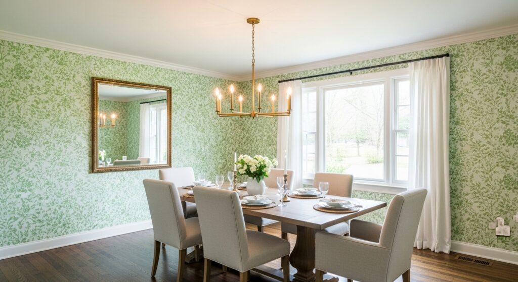 Light green sounds harmless on paper. Almost polite. You hear it and think fresh, soft, maybe a little boring. Then you actually put light green dining room wallpaper on the walls and the room starts acting brighter than expected, louder in reflections, softer in corners. It doesn’t shout, but it keeps interrupting in small ways. That’s the part nobody warns you about.