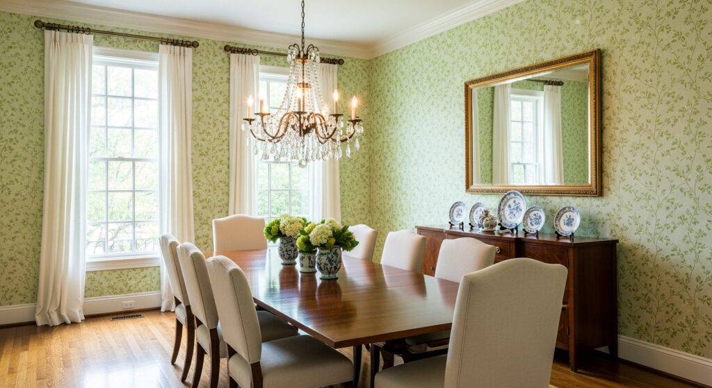 Light green dining room wallpaper ideas don’t settle into one mood. They drift. They adjust. Some days the room feels open and calm. Other days it feels alert, almost awake. That’s fine.